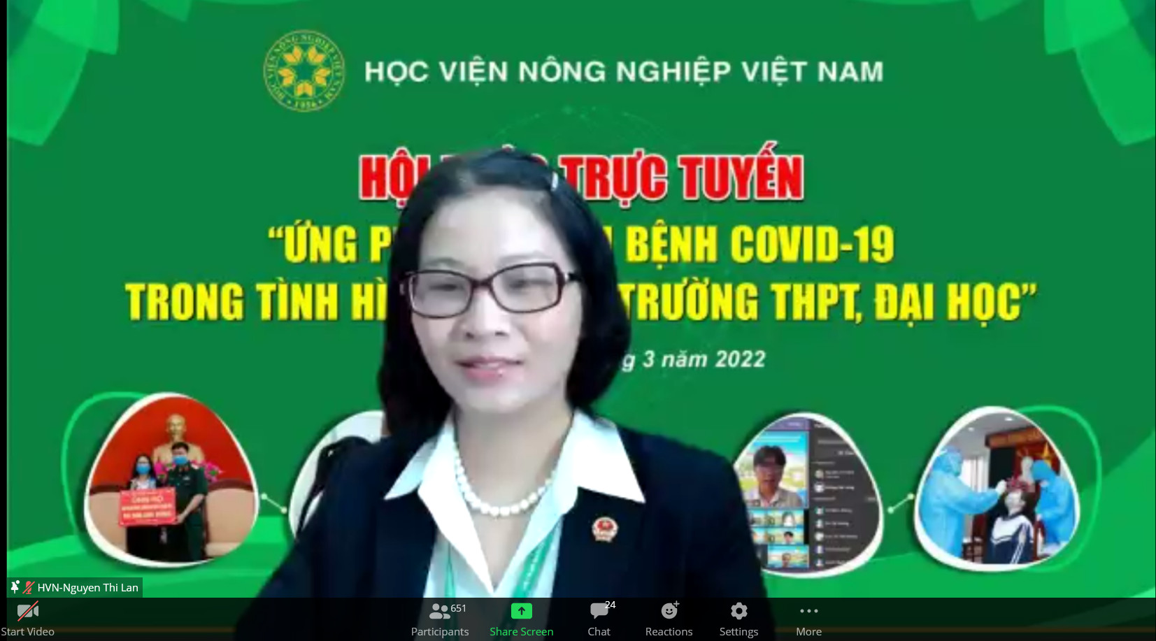 Nhận thức rõ trách nhiệm trong công tác phòng, chống dịch bệnh Covid-19, GS.TS Nguyễn Thị Lan khẳng định: Học viện Nông nghiệp Việt Nam đã xây dựng và tổ chức thực hiện kế hoạch dạy - học online, đảm bảo chất lượng đào tạo, an toàn trường học và sức khỏe cho cán bộ, viên chức, sinh viên.