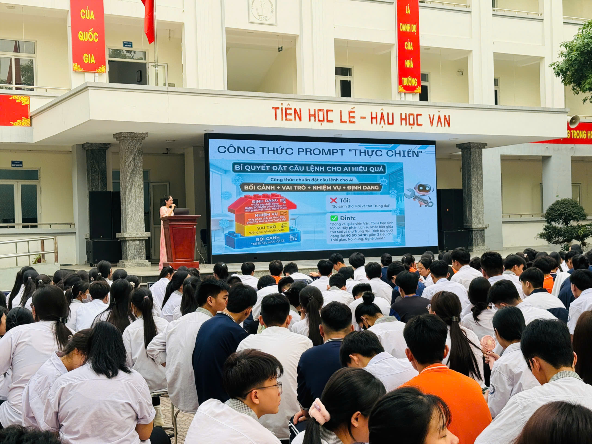 Trong bối cảnh chuyển đổi số mạnh mẽ, nhà trường đã chủ động đưa AI vào giáo dục theo hướng thiết thực – khoa học – dễ áp dụng, giúp học sinh tiếp cận công nghệ một cách chủ động và thông minh.
